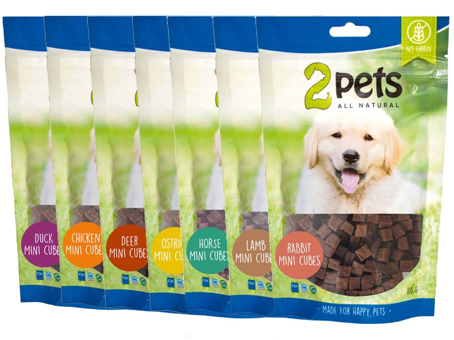2pets Dogsnack Mini Cubes är ett naturligt och smakrikt hundgodis med hög kötthalt.