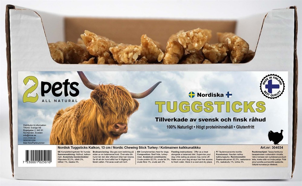 Ge din hund en smakrik belöning med Nordiska Tuggsticks från 2Pets, tillverkade av högkvalitativ råhud från Sverige och Finland. Dessa tuggrullar erbjuder ett naturligt sätt att tillfredsställa hundens tuggbehov samtidigt som de bidrar till renare tänder och fräschare andedräkt.