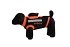 Allt svart tyg på västen är kevlar och på sidorna finns reflexdetaljer som gör hunden mer synlig om den skulle hamna på en väg. Den har även oranga detaljer som gör västen mer synlig för passkyttar under pågående drev.