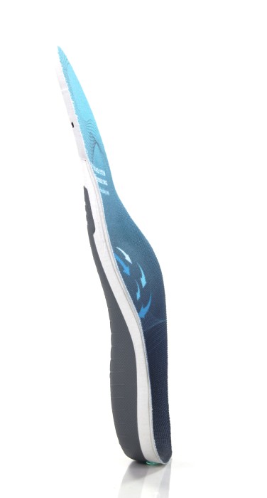 Air-Flow är endast 4,5 mm tunn och fungerar utmärkt i dom flesta typer av skor. Tänk på att den bygger nästan en storlek och då fungerar bäst i träningsskor, kängor och stövlar, där det finns en löstagbar innersula att byta ut. Sulan går utmärkt att klippa till med en vass sax framtill för att ge en perfekt passform. Detta görs enklast genom att ta ut den befintliga sulan ur skorna, för att använda som mall när du klipper.