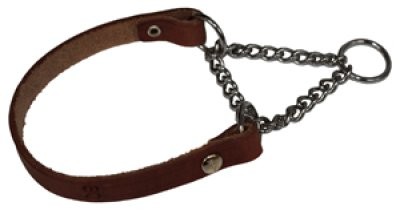 Alac Läderhalvstryp är ett slitstarkt hundhalsband med kromad triangelkedja och nitar fastsatta på vardera sida för extra hållbarhet.