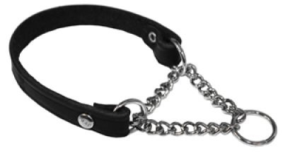 Alac Läderhalvstryp är ett slitstarkt hundhalsband med kromad triangelkedja och nitar fastsatta på vardera sida för extra hållbarhet.