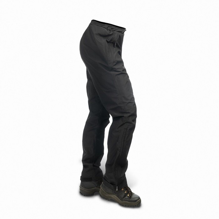 Byxorna har en vattenpelare på 10 000 mm och andningsförmåga på 5 000 g/m²/24h, vilket ger ett pålitligt skydd mot väta samtidigt som de släpper ut fukt. Midjan har resår med dragsko för flexibel passform, och nederdelen av benen är utrustade med dragkedja och kardborrejustering för enkel av- och påklädning samt extra ventilation. Två handfickor med dragkedjor ger trygg förvaring av dina småsaker.