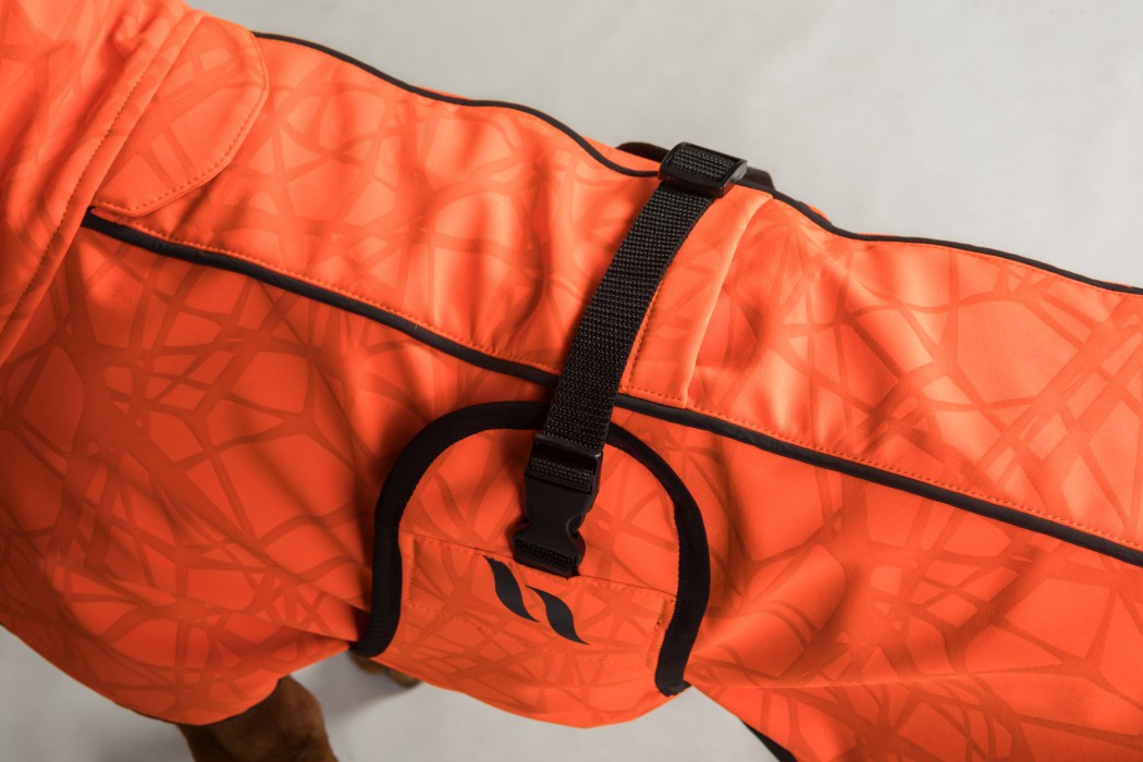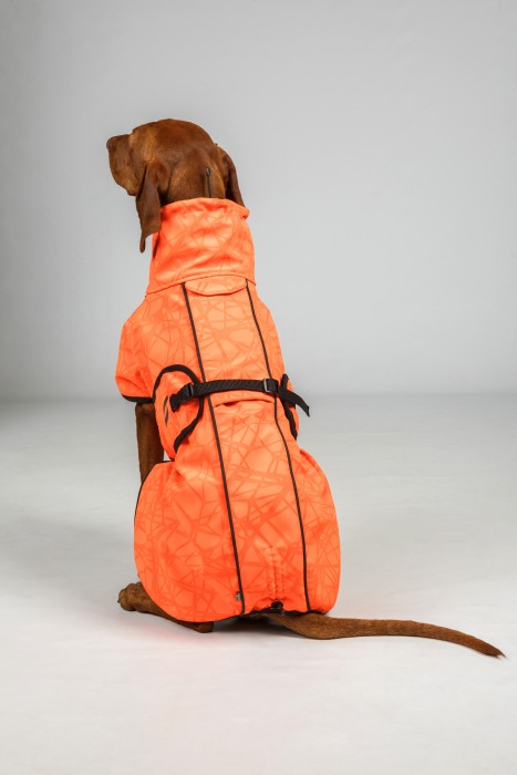 Bark är utformat för enkel användning, med en smidig och snabb knäppning av bröstplattan som justeras med ett spänne på ryggen. Kardborrefästen på sidorna ser till att täcket håller sig på plats utan att vrida sig. Reflexdetaljer och ett dolt reflekterande mönster gör att hunden syns tydligt från alla vinklar, även under mörka promenader.