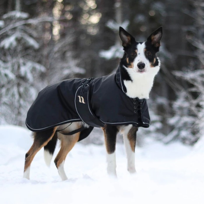 Med en elastisk dragsko baktill kan täckets längd enkelt justeras, vilket gör det idealiskt för hundar vars rygglängd ligger mellan två storlekar. Hundjackans form är noggrant designad för att ge en bekväm passform runt bröstkorgen, samtidigt som frambenen får full rörelsefrihet.