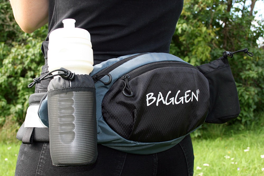 Denna midjeväska är den största i Baggens sortiment och har tre fack/fickor samt två flaskhållare. Det stora facket, som är hela 35 cm brett, rymmer cirka 3 liter och ger gott om plats för din packning. Inuti det stora facket finns också en mindre ficka, perfekt för betalkort, dokument eller mobiltelefon.