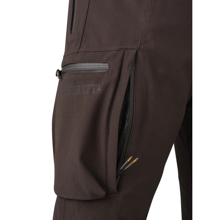 Bakhold jaktbyxor är designade för jakt i miljöer där tystnad är avgörande. De är tillverkade i ljudlös, borstad polyester. Byxorna är både vattentäta och ventilerande, tack vare Beretta Waterproof Breathable (BWB) EVO-membranet passar de både för aktiv och stillasittande jakt. Byxornas stretchiga innerfoder ger både värme och rörelsefrihet, medan ventialtionsdragkedjor säkerställer optimal andningsförmåga under intensiva pass. Det slitstarka yttertyget ger lång hållbarhet utan att kompromissa med komforten. För jägare som kräver tystnad, skydd och maximal rörelsefrihet i öppna landskap och varierande terräng.