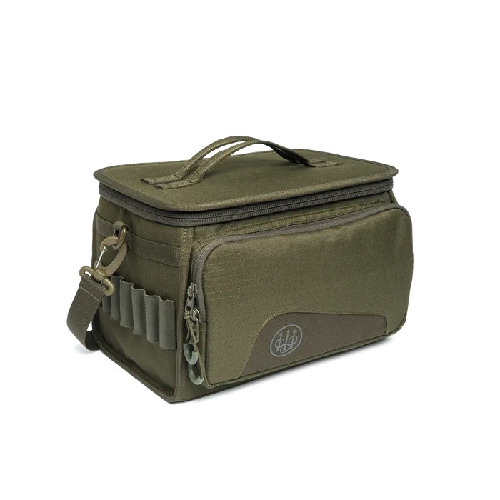 Väskan är tillverkad i kraftig reptålig och vattentät polyester. Den har ett stort fack för 6 lådor x 25 patroner och har 3 extra fickor på utsidan. Mjuk och skyddande insida, som förhindrar att patronerna skadas, samtidigt som den är lätt att bära tack vare den justerbara axelremmen.