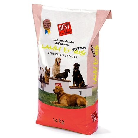 Best in Show Lamm & Ris Extra lämpar sig för hundar med normalt till högt energibehov, till unghundar och till hundar som har svårt att gå upp i vikt. Kan även ges till den dräktiga eller digivande tiken.