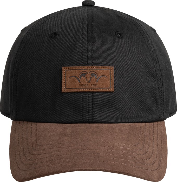 Blaser Argali Suede Badge Keps i svart kombinerar klassisk design med funktionella detaljer. Tillverkad i slitstark bomull och försedd med en badge i brunt mockaliknande PU-läder, prydd med Blasers ikoniska Argali-logo.