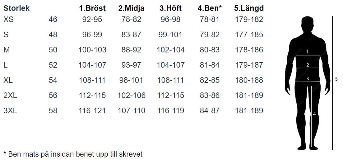 Midja: Mät vid midjan där du normalt ska bära byxorna.