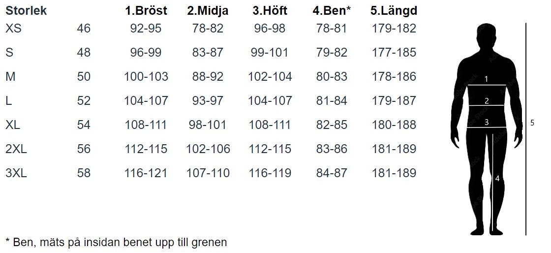 Midja: Mät vid midjan där du normalt ska bära byxorna.