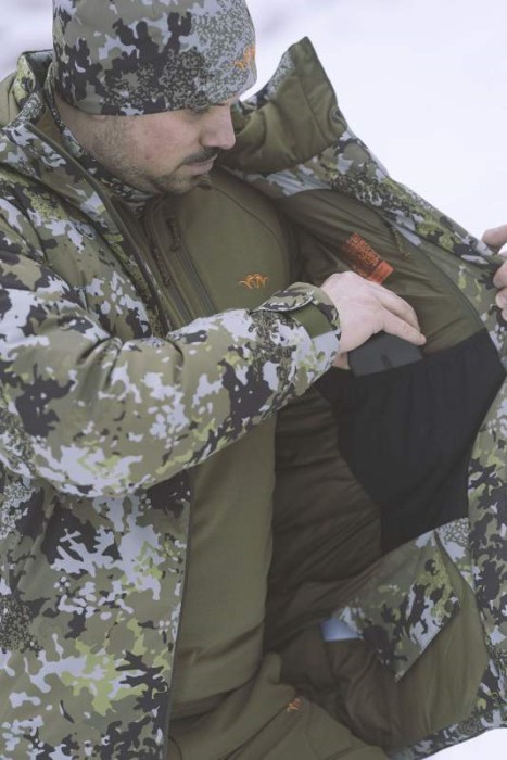 Blaser Shield dunjacka är designad för krävande väderförhållanden, med ett 100% vatten- och vindtätt yttertyg som ger optimalt skydd vid jakt, vandring och andra utomhusaktiviteter.Den smarta kombinationen av ExpeDry-behandlat dun och Primaloft-isolering ger överlägsen värme utan att bli tung, vilket gör jackan lika skyddande som en sovsäck men lätt och smidig att bära.För extra funktionalitet har jackan sidofickor och en radioficka på bröstet, en innerficka för säker förvaring samt justerbara ärmslut med kardborre för perfekt passform.