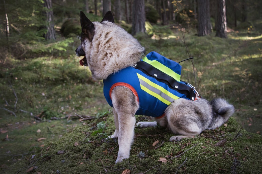 Västen har en ficka på ryggen där du enkelt sätter GPSen, fickan sluts sedan med dubbel kardborre - detta ökar sändarens räckvidd och passar de flesta GPS-sändare.