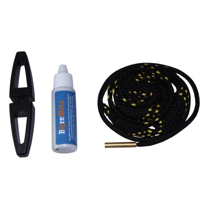 BoreBlitz är ett kit med rengöringsprodukter som finns för både kulvapen och hagelvapen. I förpackningen finns läsksnöre, draghandtag, vapenolja och en återförslutningsbar påse. BoreBlitz finns för de vanligaste kalibrarna och även för rengöring av pistoler. Innehåller insydda gummikulor som komprimeras i loppet och trycker ut mot väggarna. Snöret har inget utstickande vasst som kan skada blånering eller kolvträ. Addera lite olja i loppet eller på rengöringssnöret före du drar loppet så blir det skinande rent.