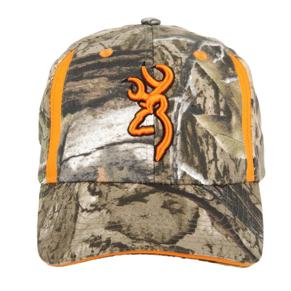 Brownings Center keps är en kamouflerad keps med orangea detaljer och logo.