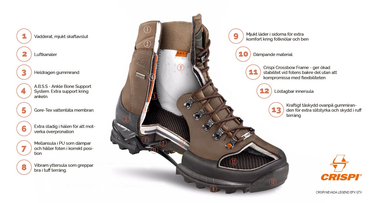 Om du söker en riktigt bekväm, vridstyv känga som både passar till jakt/fiske och till fjällvandring så är Crispi Nevada ett mycket bra val. En unisex känga i mid-modell med Ankle Bone Support-funktion som ser till att dina fotleder är skyddade från påfrestning i krävande terräng.