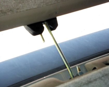 Du placerar kroken i luckans låskolv och stänger igen luckan med kroken emellan, lås sedan bilen och bakluckan är fortfarande öppen och ger hunden frisk luft.