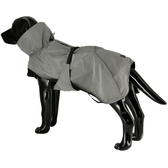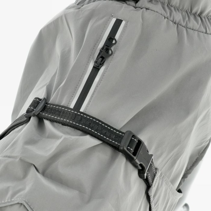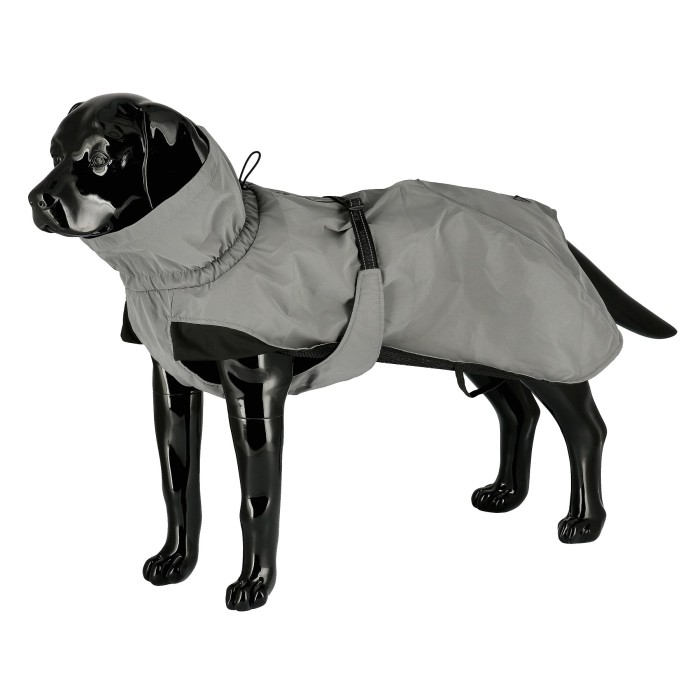 Täcket är utrustat med fullreflekterande tyg och detaljer för ökad synlighet i mörker och dåliga ljusförhållanden. Med justerbar halsöppning, krage, besnöre och en praktisk öppning för sele på ryggen erbjuder det en perfekt passform och smidig användning.