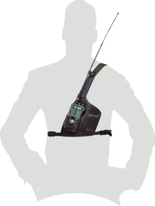 Dubbelselen, för jaktradio och med fästpunkter för vikbar GPS-hållare