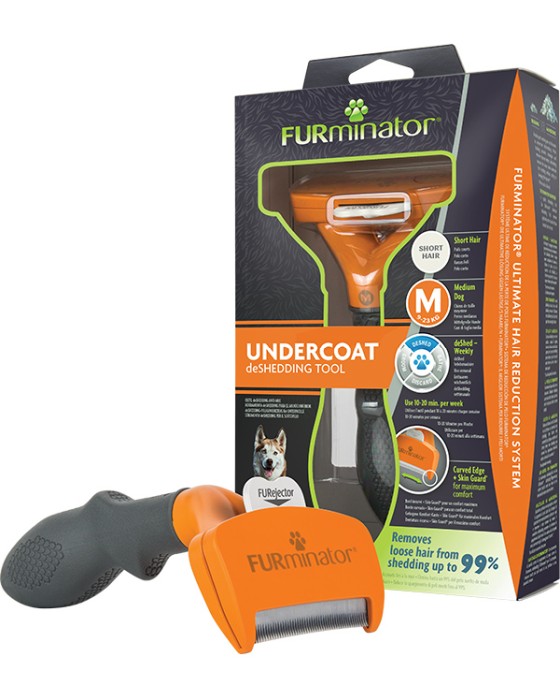 FURminator Short Hair M är en effektiv borste som är särskilt framtagen för att ta bort underull och löst hår hos korthåriga hundar av mellanstor ras samt lång och korthåriga katter. Med hjälp av den rostfria kammen tränger borsten ner under täckpälsen och avlägsnar fällningshår utan att skada huden.