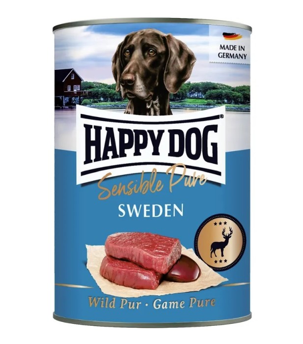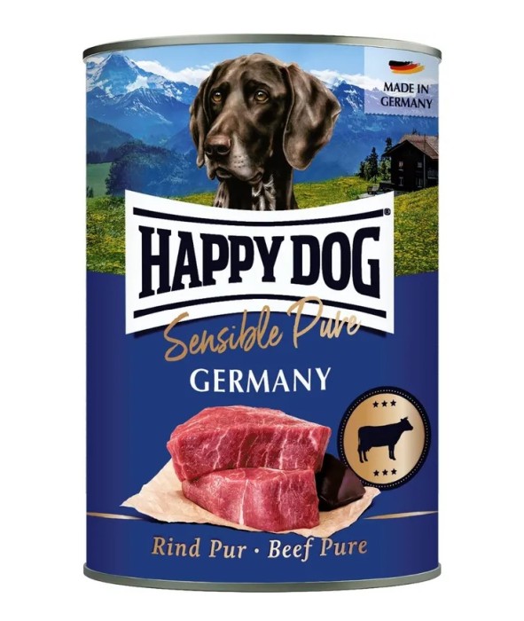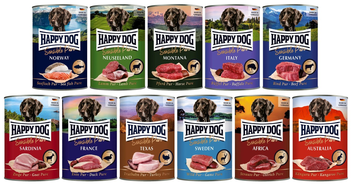 Happy Dog Våtfoder tillverkas med färskt kött från regionalt uppfödda djur. Det innehåller inga vegetabiliska tillsatser, soja, färgämnen eller konserveringsmedel.