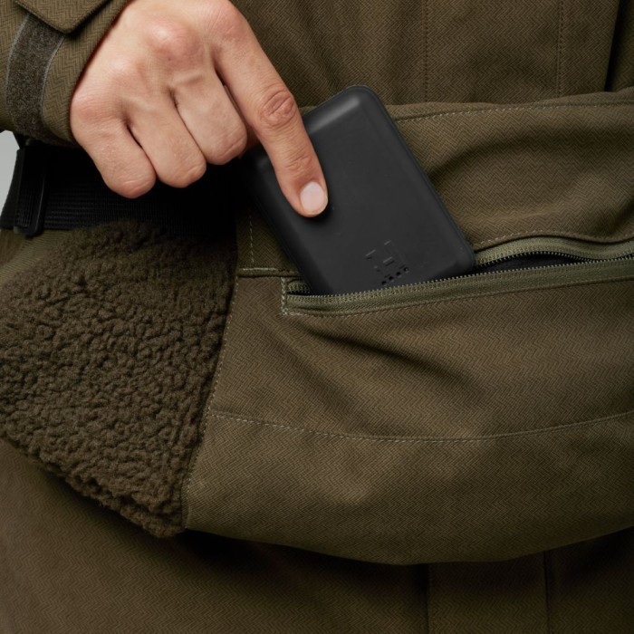 Håll händerna varma under de kallaste jaktdagarna med Härkila Driven Hunt Heat Muff – en innovativ handvärmare med integrerat HEAT-system. Muffen är konstruerad för att ge komfort och funktion i tufft väder, med ett slitstarkt, vatten- och smutsavvisande yttertyg och mjuk fleece invändigt. Den är fylld med 200 g Thermo Poly Shield™-isolering för långvarig värme och bekvämlighet vid stillasittande jakt.