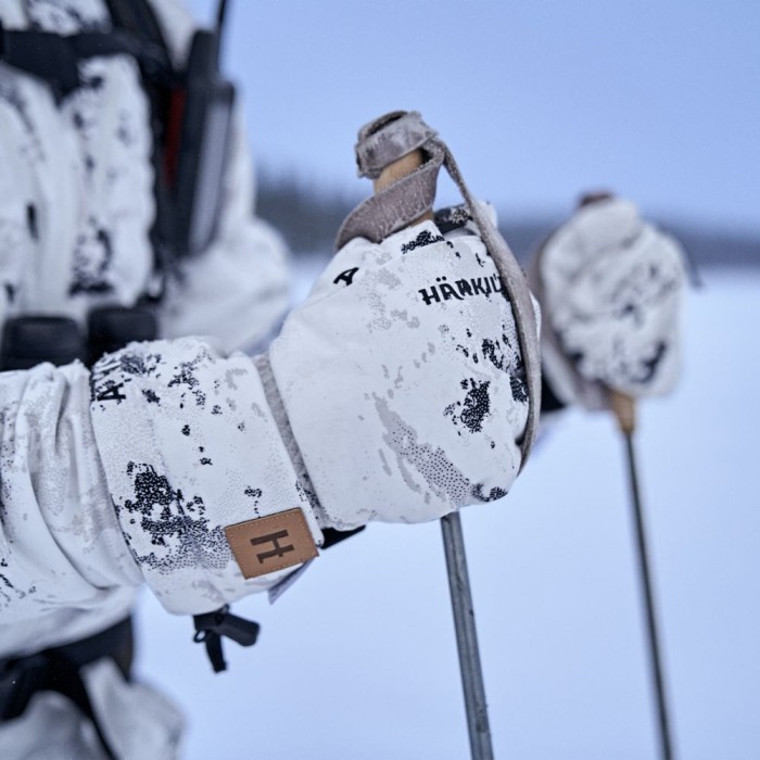 De långa muddarna är isolerande och justerbara med en hand, vilket gör dem perfekta i fält. En dragkedja längs pekfingret gör att du enkelt kan hantera avtryckaren utan att ta av dig vanten. Förstärkta handflator i äkta skinn ger säkert grepp om vapen och utrustning, även i fukt och kyla. Vantarna är klädda i det diskreta men effektiva AXIS MSP® Snow-kamouflaget, optimerat för vinterlandskap.