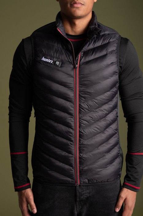 Hunter Heat värmeväst är följsam och framtagen för att hålla dig varm under jakt och friluftsliv. Den värms upp av fem effektiva värmepaneler, två fram och tre bak som enkelt styrs via en knapp. Du kan välja mellan tre olika värmenivåer beroende på väder och aktivitetsnivå. Värmevästen har stretchpaneler med dragkedjor i sidorna och stretch i ryggpartiet, vilket ger en flexibel passform som anpassar sig efter din kropp. Den är designad för att sitta bekvämt nära kroppen, med resår i nederdelen för ökad komfort. YKK-dragkedjor ger hög hållbarhet och smidig funktion. Västen är utrustad med två praktiska framfickor och en innerficka där powerbanken förvaras.