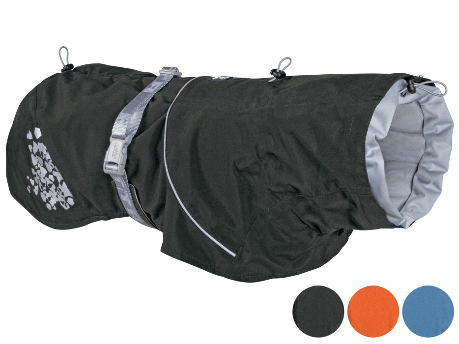 Monsoonjackans utmärkta dimensionering garanterar god passform för de flesta raserna. Magstyckets breda form håller jackan på plats, och den hålls på hunden också vid vildare lekar, utan att begränsa hundens rörelser. Det väl täckande magstycket skyddar magen effektivt mot smuts och sand.
