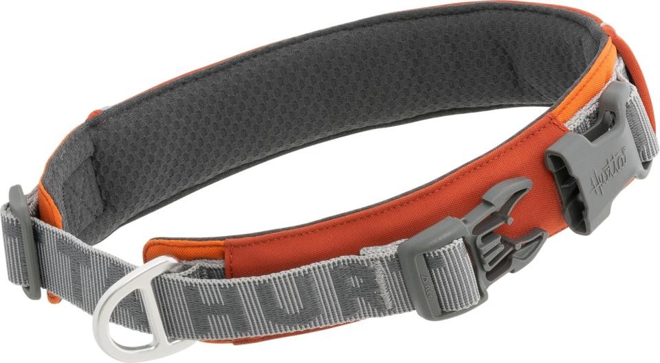 Hurtta rover halsband är enkelt att använda, träs smidigt över huvudet och stängs med ett säkert spänne, perfekt för både vardag och aktivitet.