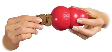 Du stoppar ner ett kex i hundens Kongleksak som ger den en rolig aktiveringsstund.