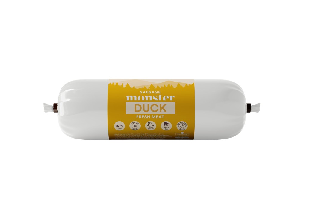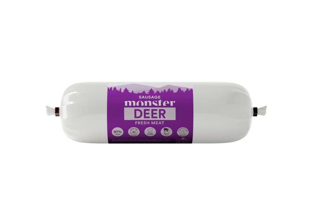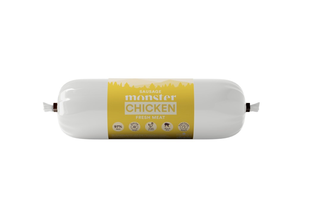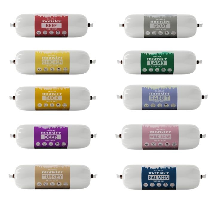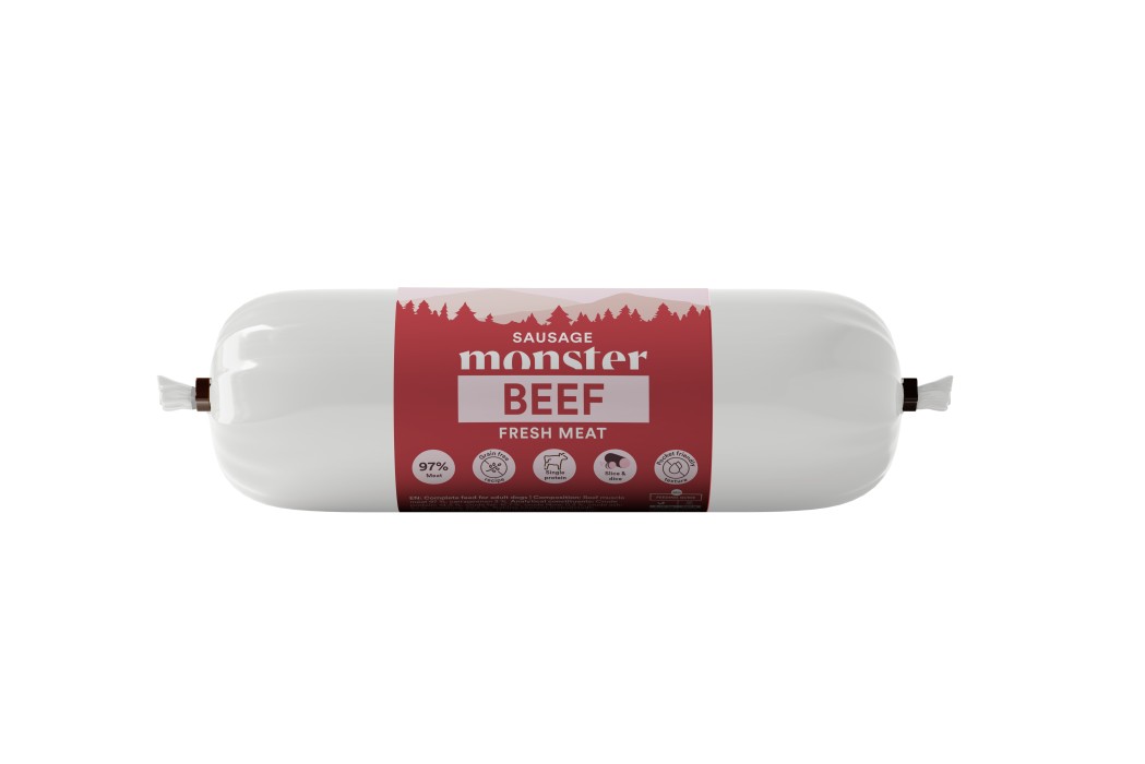 Monster Dog Sausage är en riktigt köttig korv för hundar, spannmålsfri, smakrik och fullproppad med naturliga ingredienser. Den finns i flera mumsiga smaker, men gemensamt för dem alla är det höga köttinnehållet och den smarta, fasta texturen som gör korven lätt att skära upp utan att kladda. Perfekt att ha med i fickan under promenaden eller träningspasset, om du inte har något emot att lukta lite korv, förstås.