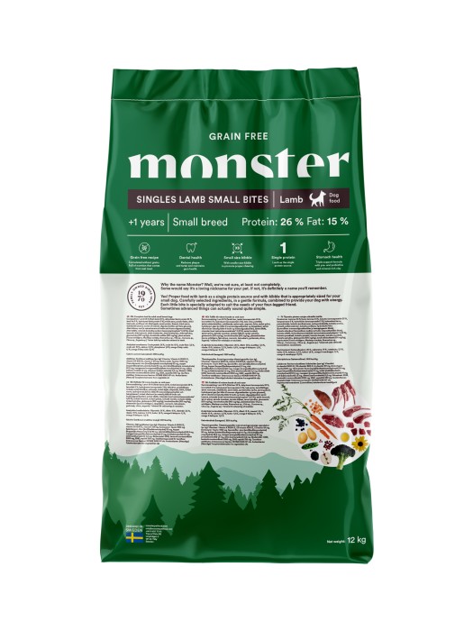 Letar du efter ett lättsmält och näringsrikt foder för din hund? Monster Dog Grain Free Singles Lamb Small Bites är ett spannmålsfritt helfoder, särskilt utvecklat för små raser eller hundar som gillar mindre foderkulor. Med lamm som enda animaliska proteinkälla passar det utmärkt även för känsliga magar och allergiska hundar.