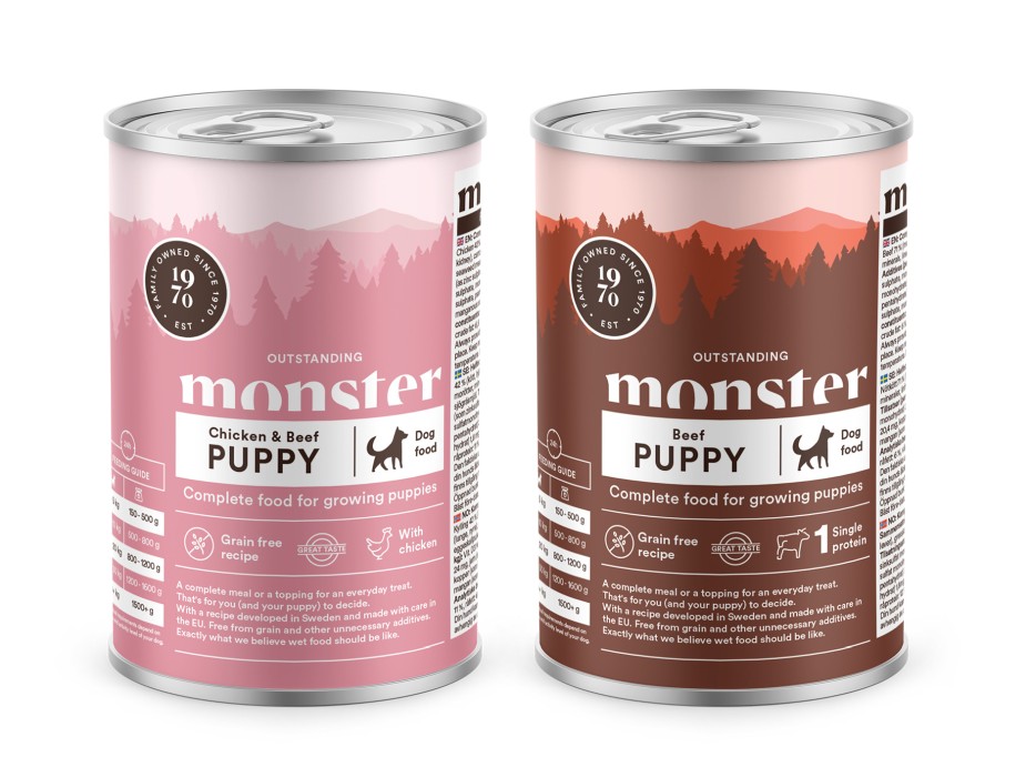 Monster Dog Puppy är ett våtfoder för växande valpar som är utvecklat i Sverige och tillverkas med noga utvalda ingredienser från EU.