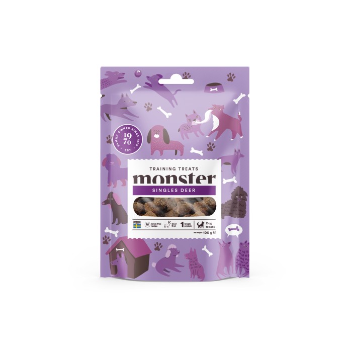Dessa smulfria godbitar är lämpliga för alla hundar och kan enkelt tas med i fickan, vilket gör dem till det ultimata valet för aktiva hundägare. Monster Training Treats är inte bara ett smakfullt sätt att belöna din hund, de hjälper även till att motivera din hund under träningspass. Med sin praktiska 100g-förpackning är de enkla att ta med på promenader eller träningspass, och fungerar utmärkt som en extra belöning. Ge din hund uppskattning på ett hälsosamt sätt.