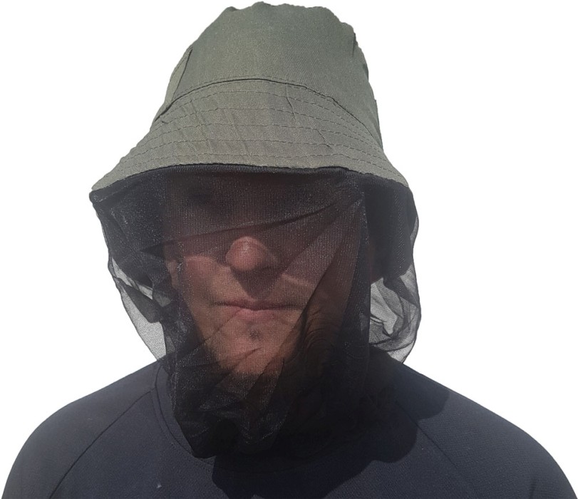 Mygghatt med finmaskigt nät, den täta myggnätet runt hatten skapar en barriär som håller myggor och andra små insekter borta, vilket låter dig njuta av naturen i lugn och ro.