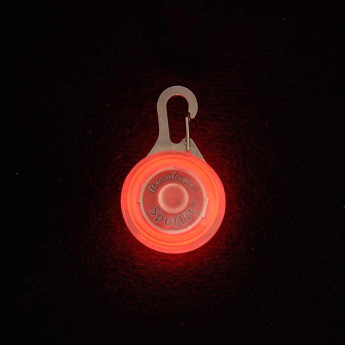 Lampan är enkel att fästa med hjälp av den lilla karbinhaken i rostfritt stål. SpotLit har två lägen att välja mellan, konstant ljus eller blinkande ljus.