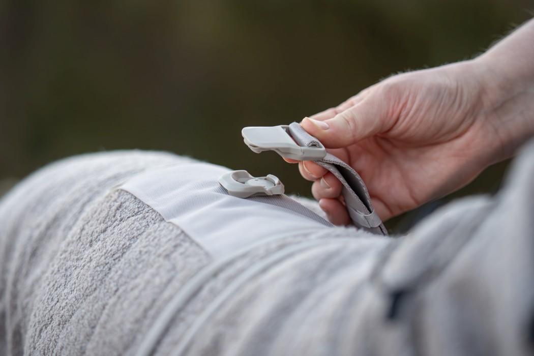 Täcket är också lätt att torka mellan användningar tack vare en praktisk upphängningsögla.