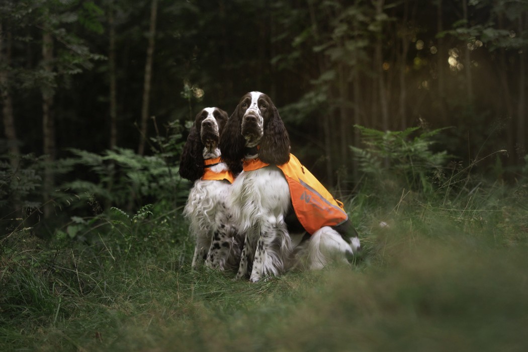 Det slitstarka ripstop-materialet står emot vassa grenar och tuff terräng, och den klara färgen i kombination med reflekterande 3M™-detaljer gör hunden synlig även i svagt ljus. På orange-versionen finns dessutom röda och gula kontrastfält som visar åt vilket håll hunden är vänd en uppskattad detalj vid spårning.