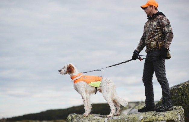 Den skarpa orangea färgen, reflekterande tryck och 3M reflex gör västen mycket synlig även i terräng.