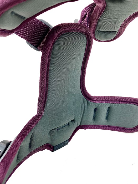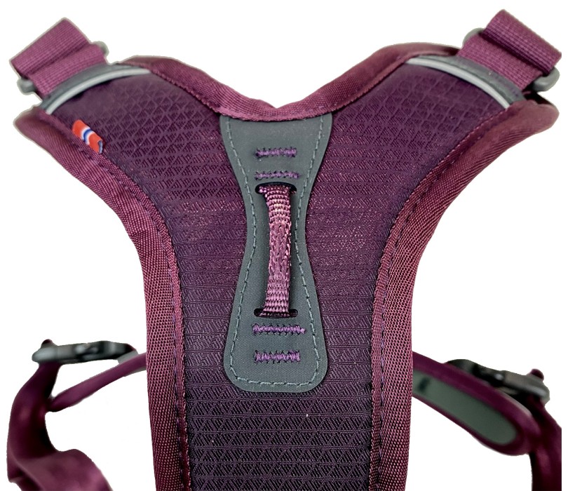 På sidorna har du spännen som gör det lätt att ta av och på selen. Det finns 3 olika kopplingspunkter vilket gör selen multifunktionell - en D-ring tillverkad i aluminium ovanpå ryggen, en på undersidan som är tänkt att fästa spårlinan i och en på selens framsida, denna används för en anti-drag funktion. Ovanpå ryggen har du ett smidigt handtag för mer kontroll, det kan även användas för att hjälpa hunden över ex ett hinder.