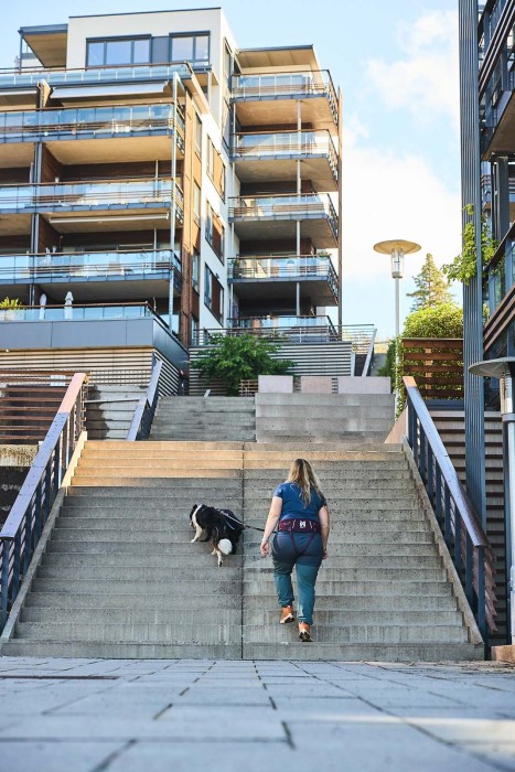 Bältet har reflexdetaljer för dig och din hunds säkerhet i mörkret.