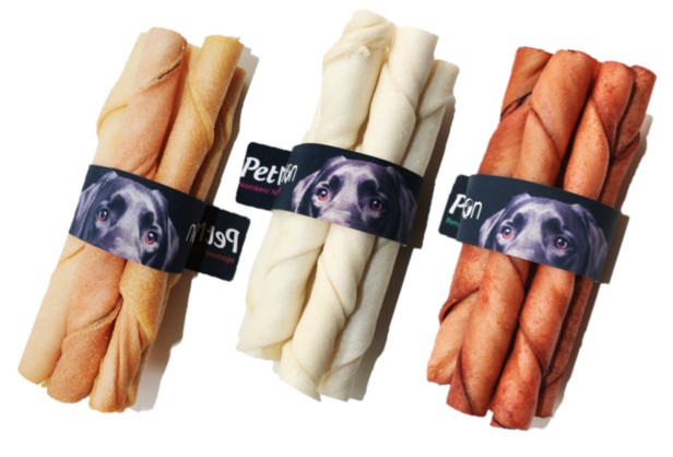 Tuggbenen är tillverkade av torkad råhud från nöt och finns i flera olika smaker.