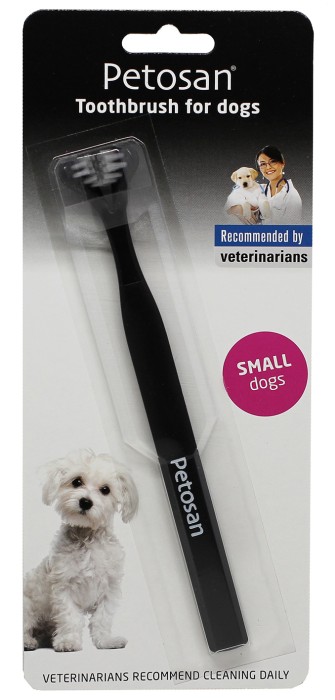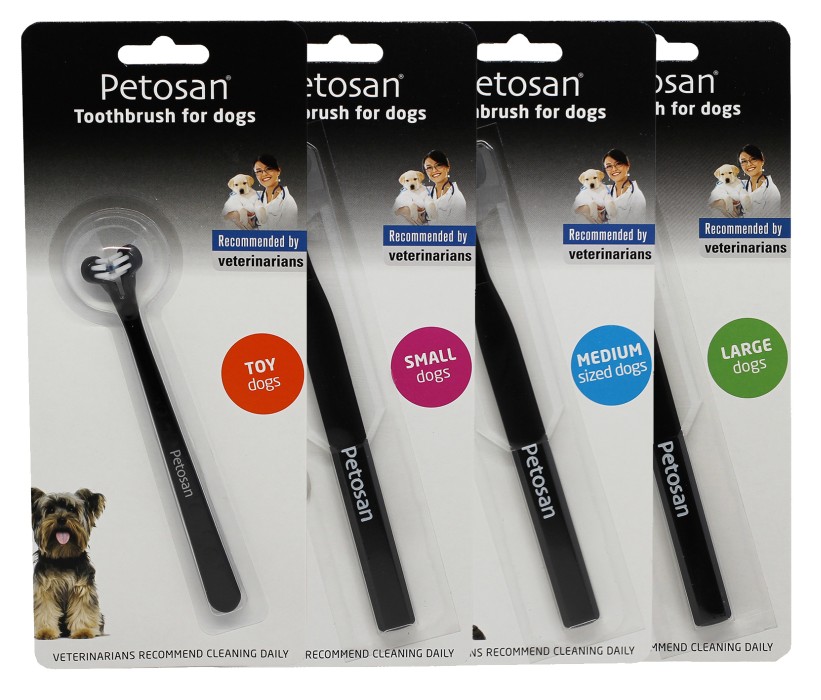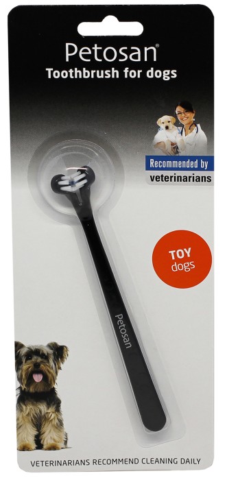Petosan Dubbeltandborste är så smidigt utformad att den når hundens alla vrår i munnen.