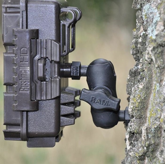 RAM Tough-Tap använder en 1" skruv för att montera en åtelkamera, actionakamera eller rörelsesensor i träd eller stolpe.