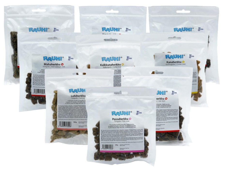 Rauh hundgodis innehåller inget spannmål eller tillsatta färgämnen utan är helt naturliga.