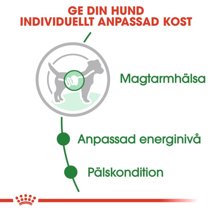 Ett foder som hjälper till att stödja matsmältningshälsan samt hålla en bra balans i tarmfloran. Hjälper till att bibehålla idealvikten hos dom mindre hundraserna. Innehåller näringsämnen som stödjer hundens hud och päls. Berikad med EPA & DHA.