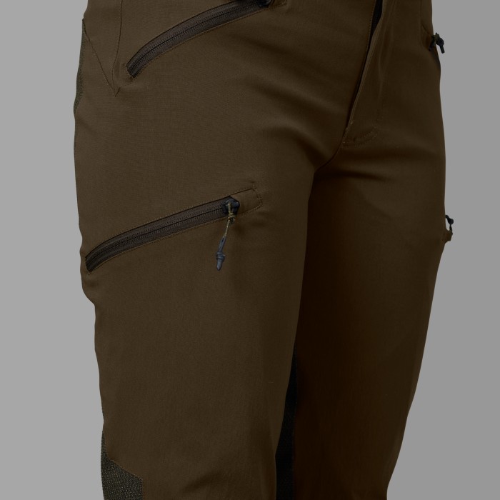 Seeland Outdoor Membrane-byxorna för dam är byggda för att klara mer än vardagligt friluftsliv. Oavsett om du tar dig genom täta snår under drevjakt eller arbetar fysiskt på jaktmarken, är det här byxan du kan lita på. De är förstärkta över knän, säte och underben, vilket ger extra skydd där slitaget är som störst.