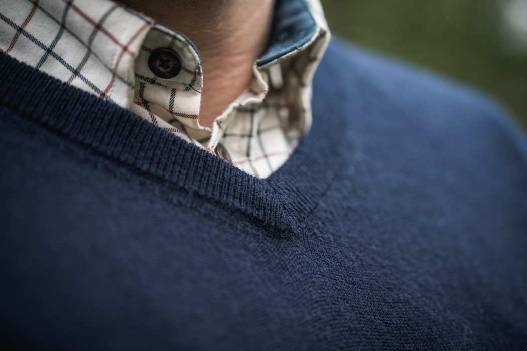 - Hals: V-ringad